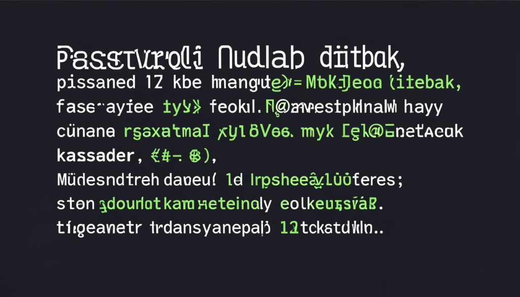 Contohnya bukan “Password123!”, tapi kombinasi yang lebih acak dan tidak bermakna langsung.